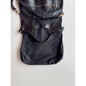 FOLEY + CORINNA Mid City Black Crinkle Leather Foldover Crossbody Bag Purse