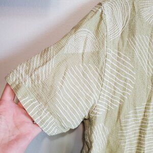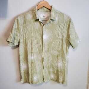 FOLK Jay Button Front Shirt Short Sleeve Textured Cotton Geometric Men's Medium
