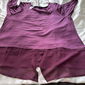 FOOLER TOP, CROSSOVER BACK DETAIL, WINE, SIZE 4X, LONG SLEEVES, VISCOSE/SPANDEX, MICHEL STUDIO for ADDITION ELLE, IN ORIGINAL BAG, TAGS ON, NEVER WORN