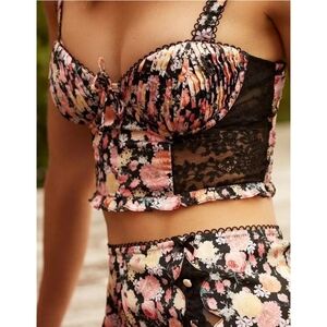FOR LOVE & LEMONS Gardenia Bustier Floral and Lace Satin Corset Top S Small