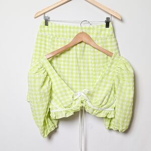 FOR LOVE & LEMONS Maureen Set Top And Skirt Green Gingham M Medium