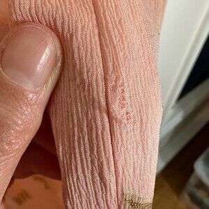 This dress has had an alteration done, the mini skirt liner pictured in the stock photo has been cut out. You would need to wear something under this dress as the skirt is fully sheer. Two other flaws to note: there is a small stain on the back of the skirt, lands around the back of the left thigh, it is very small, smaller than a pencil eraser. There is also a tiny pull near the zipper, about 1/4"