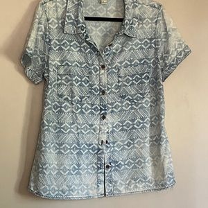 FOREVER 21 Aztec Pattern Blue And White Button Down 1X altered fits size L