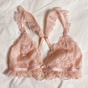 FOREVER 21 Baby Pink Lace Ruffle Cross Back Bra