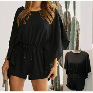 FOREVER 21 Black Batwing Sleeve Drawstring Waist Romper s/m