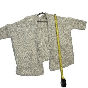 Perfectly cozy. Chunky knit with shades of cream. Size large. Oversized. Open front. Very good condition. See photos for condition and measurements. No material tag but it’s an acrylic knit.