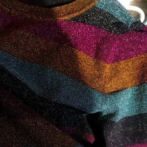 Metallic Multicolor Striped Crewneck Sweater Stripes FOREVER 21 Long Sleeve Tee Funky Bright Colourful sweater Blue Sparkle Top Ribbed