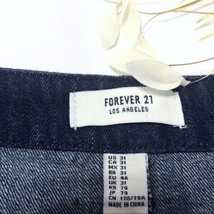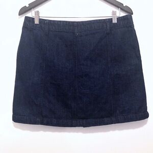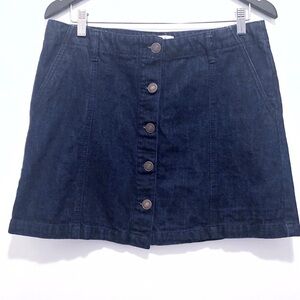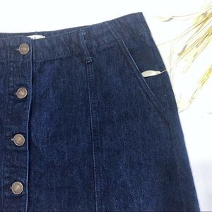 Switch up your regular jean skirt with this front button-up design from F•21 • EUC • A-line fit • Dark wash • Belt loops • Front side slant pockets • 100% Cotton