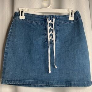 EUC Forever 21 Lace up denim mini skirt. Back zipper.