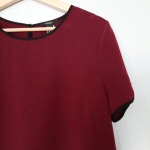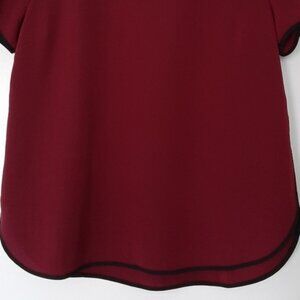 FOREVER 21 Light Short Sleeve Crewneck Blouse Top Black Piping Burgundy Red Sz M