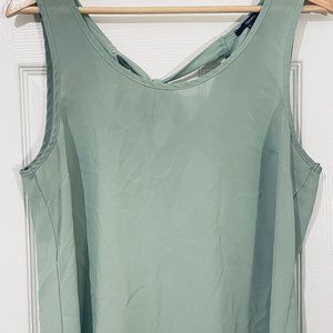 This pale sage green Forever 21 tank top has an adjustable bow detail on the back, it has a modest neckline and is full-length.