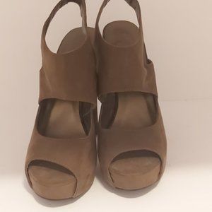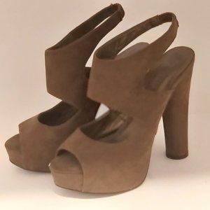 FOREVER 21 | Peep Toe Platform Chunky Heel Sandals Suede Beige