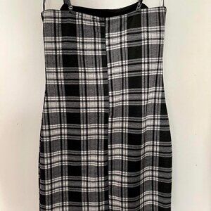 Mini dress featuring an allover plaid print, a square neckline, adjustable cami straps and a concealed back zip closure