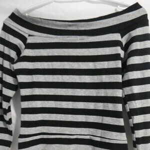 FOREVER 21 | Striped Grey and Black Off The Shoulder Hook & Eye Fastened Shirt