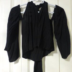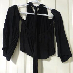 In very good condition! F21 "contemporary". Only worn a few times. Cold shoulder, cropped, ties up at the back. Cool top for your next concert, party, festival or night out!