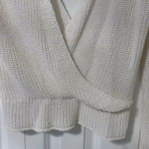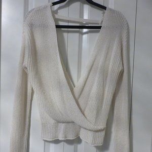 In good condition! Very cute cream white sweater. Note that it is a very deep v-neck and see through so you can layer it with a tank top underneath! Cute sweater for a nice casual day out, date night, night out or party!