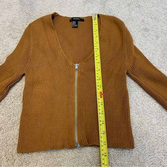 FOREVER 21 rust brown ribbed long sleeve Zipper top size medium