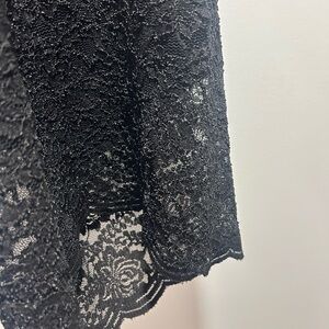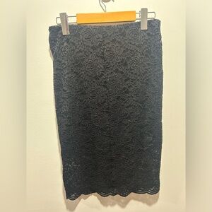 FOREVER 21 size L black pencil skirt, floral lace overlay and silky liner