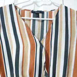 FOREVER 21 striped v-neck chiffon cropped long sleeve blouse