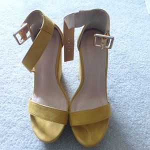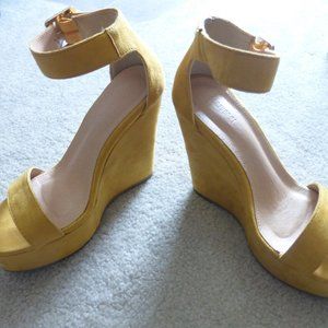FOREVER 21 yellow faux suede wedges with single strap and buckle closure