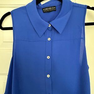 FOREVER21+ Blue Open Back Flowy Top
