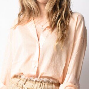 FORTE FORTE Cotton Silk Voile Shirt in Light Peach. Button-down shirt in a very soft, lightweight fabric. Featuring an oversized silhouette. Long sleeves, button cuffs, covered buttons. 30% Silk / 70% Cotton. Made in Italy. Brand new, never worn, with tags.