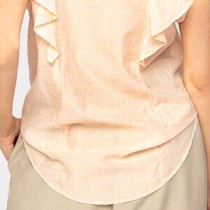 FORTE FORTE Sleeveless Ruffle Top in Peach. Cotton button-down made of quality cotton fabric with a subtle print pattern and ruffle details. 100% Cotton. Made in Italy. Brand new, never worn, with tags.