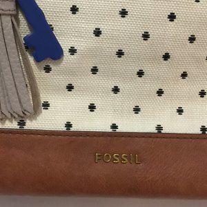 FOSSIL CANVAS TOTE WITH LEATHER TRIM