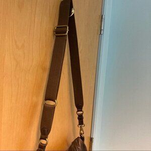 FOSSIL Large Tote Leather With Metallic Sheen Vintage Fabric Strap Y2K. Gorgeous soft leather. Many pockets and compartments. Crossbody or hand bag. 14” x 16” x 2” Strap: 45” Handles: 8”