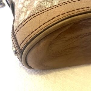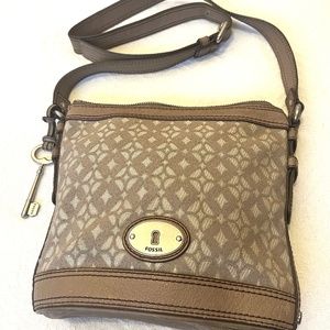 🔥🔥 FOSSIL MADDOX Beige Canvas / Leather Messenger Crossbody Bucket Bag