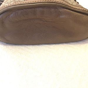 Beautiful extra large shoulder bucket purse. Spacious interior with one large zip pocket and two slip pockets.