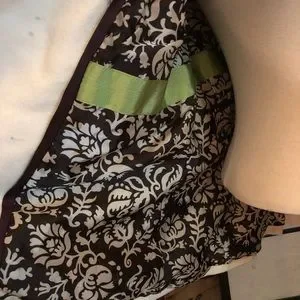 Fully lined with a brown/cream pattern and a lime green band at waist