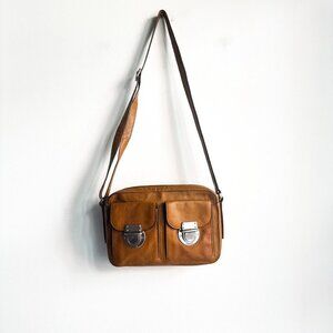 FOSSIL Riley Camel Brown Leather Messenger Bag Purse Crossbody NEW.