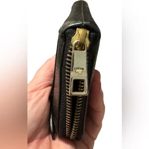 Fossil Logo on main outside zipper has slight wear.
