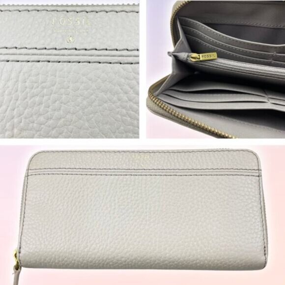 FOSSIL Tiegan Clutch Pebbled Leather Wallet Zip Around