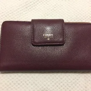 FOSSIL WALLET Full size fold over wallet 7 inches long x 3.5 tall Wine burgundy colour