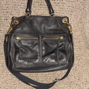 FOSSIL-Karli-Black Pebbled Leather Satchel/Xbody/Shoulder-Large Bag-Near Mint
