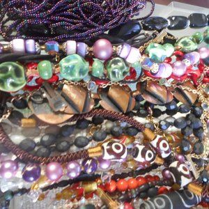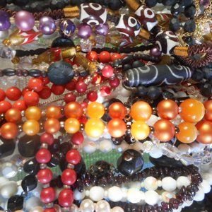 FOUR pounds of vintage to moderns necklaces:glass,plastic, ceramic, all good to wear or re sell