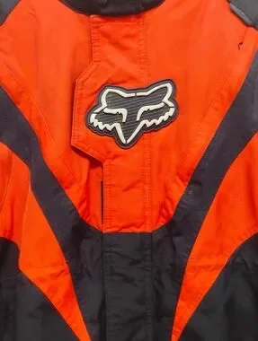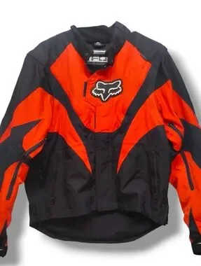 Fox Racing branded riding jacket with bold red panels. Heavy duty, well constructed and convertible into vest for warmer days.