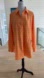 Foxcroft pastel orange non-iron stretch long sleeve button front tunic shirt. Hidden buttons down front. Pockets. A Line style with a curved hem. 65% cotton/30% polyester/5% spandex.