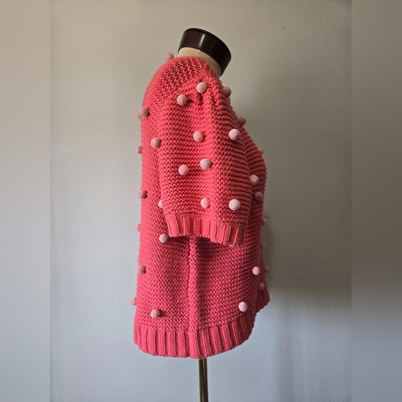 FOXIE DOX- ANTHROPOLOGIE Pink Knit Pom-Pom Sweater. Size Large