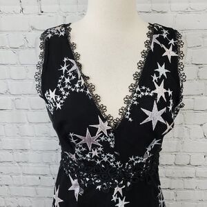 FOXIEDOX Astra Embroidered Trumpet Gown S NWT Black Silver Stars