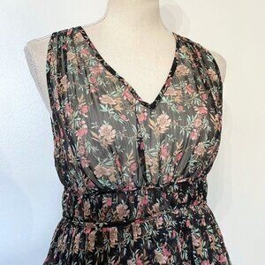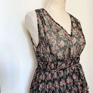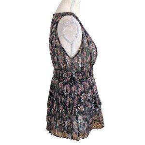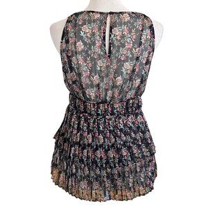 FOXIEDOX BLACK FLORAL CHIFFON TIERED PLEATED SLEEVELESS TUNIC BLOUSE TOP - XS