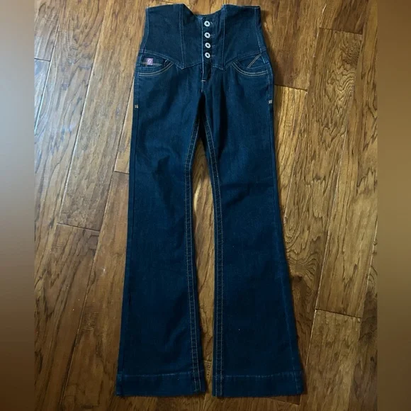High waisted, button fly, corset style vintage Foxy Jeans,