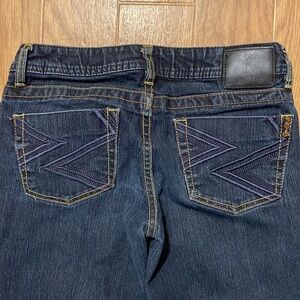 Foxy Jeans Women's Dark Wash Straight Leg Red Inside Pockets Jeans (Size 5)