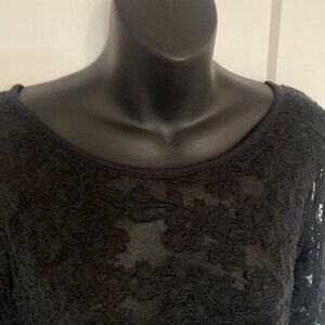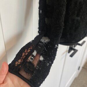 FP Free People Sheer Floral Black Lace Long Sleeve Top Size Small