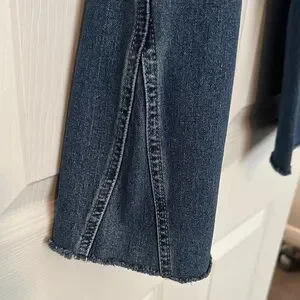 Elevate your wardrobe with these classic women's jean capris Perfect for any casual outing. Raw hem. Inseam 24”. Waist 12” lying flat.