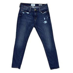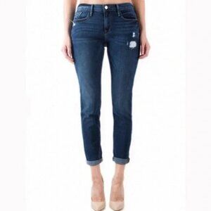 FRAME DENIM βLe GarΓ§onβ Boyfriend West End Distressed Cropped Blue Jeans Size 26