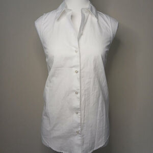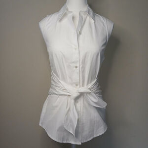 FRAME DENIM Preppy Light Academia Tie Poplin Sleeveless Blouse White Size XS