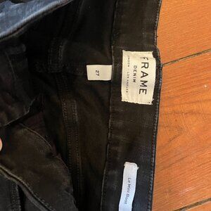 FRAME Denim LE MINI BOOT Pintuck in Noir cotton blend stone washed black size 27
